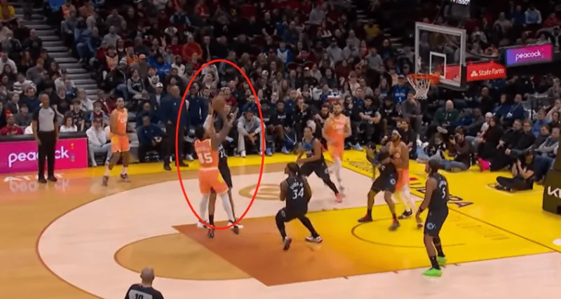面对补防的中锋直接抛投命中